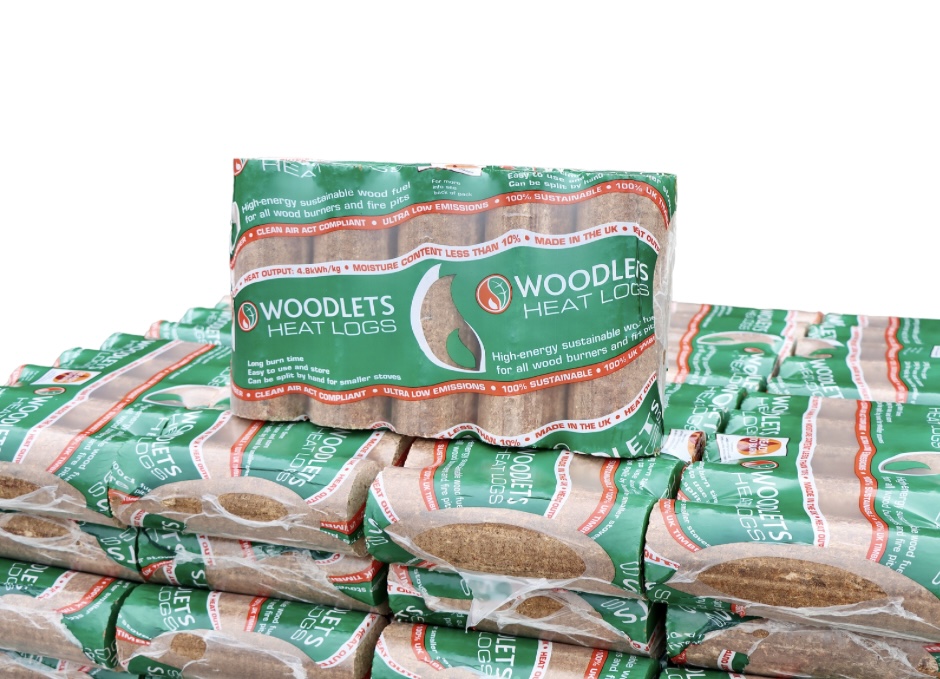 Woodlets Wood Heat Logs are made using a unique process where chipped wood is subjected to 10,000psi of pressure. The lignin molecules in the wood melt under this immense pressure, binding the wood together to create an entirely natural, ultra-dry, and high-energy wood fuel.